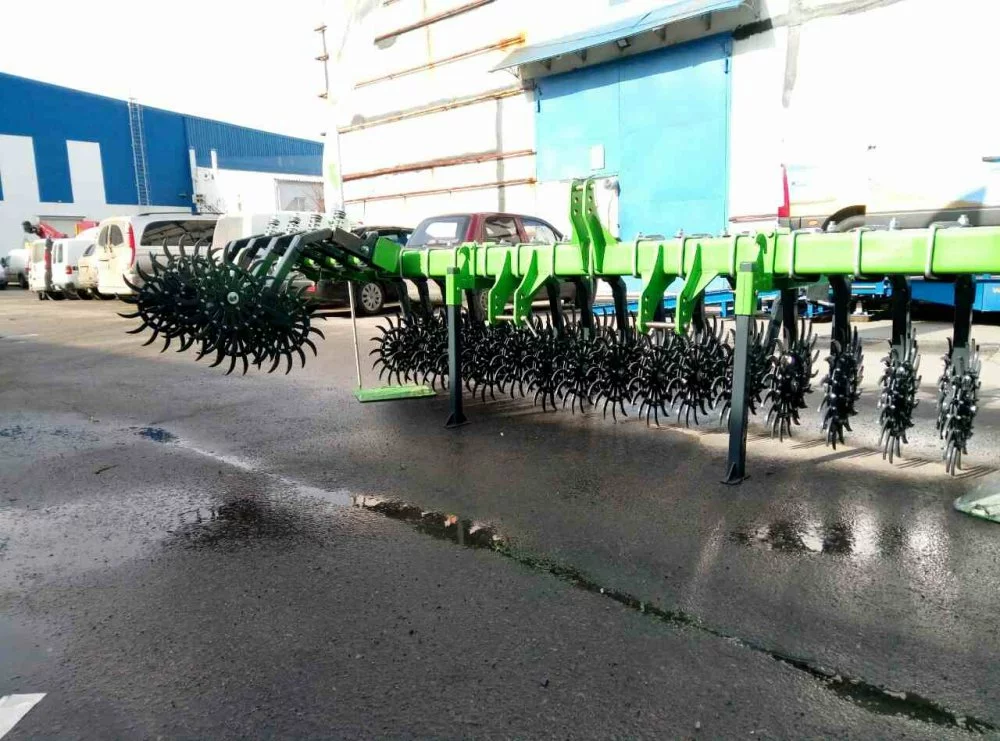 При движении трактора, колеса начинают самопроизвольно вращаться (по типу дисковых орудий), заглубляются в почву, на глубину 3-5 см, за счет чего разрушается поверхностная корка. На выходе луча колеса из земли получается микровзрыв, благодаря которому происходит нагнетание воздуха в почву. В результате чего азот, содержащийся в воздухе, переходит в плодородный слой почвы и усваивается растениями. Это дает возможность отказаться от внесения азотных удобрений. Рабочими органами мотыги создаются идеальный фон для начального развития корневой системы растений, хорошо мульчируется верхний слой почвы, разрушается почвенная корка, тем самым, сохраняется влага. Во время работы Борона ротационная-Мотыга повреждается до 0,8 % культурных растений. Для сравнения при обработке зубовыми боронами типа БЗСС повреждения составляют 10-15 %. При этом уничтожаются нитевидные корни сорняков до ста процентов на скоростях до 15 км в час. Своевременное применение бороны позволяет полностью отказаться от гербицидов. При появлении монолитной почвенной корки, на ранних всходах культурных растений, например, кукурузы в стадии 2-3 листиков, применение зубовых борон становится невозможным и тогда эффективность использования мотыги резко возрастает.